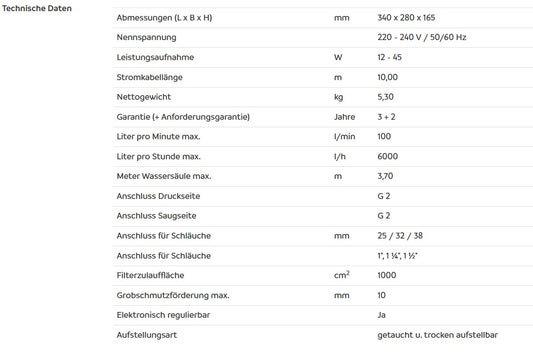 AusverkauftAquaForte O-Plus Vario S Teichpumpen 10.000